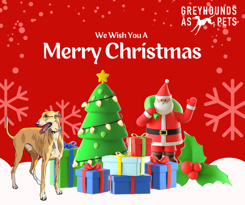 Santa has adopted a Greyhound and named her Shirley,